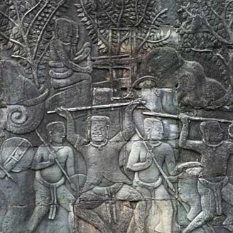 En medio de los jardines del templo de Angkor Wat encontramos un edificio llamado la Biblioteca de Angkor aunque no se sabe si se realizaba la función de biblioteca en él o no. En los frisos de numerosos templos están representadas las batallas que se fueron librando durante los diferentes asedios. También podemos encontrar representada en piedra toda la mitología hindú.